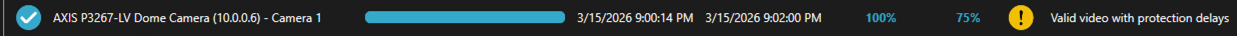 - Confirm that all selected cameras appear in the top section of the tab. Confirm that the start and end times match your selected time range.