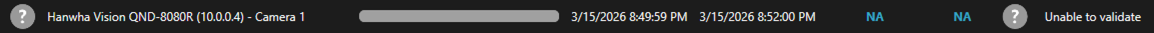 An Unverified status indicates that the video segment was not protected by SWEAR. This can occur if a camera was not added to the SWEAR Certification Service in Management Client, or if the selected time range includes a period when the camera was not recording.
